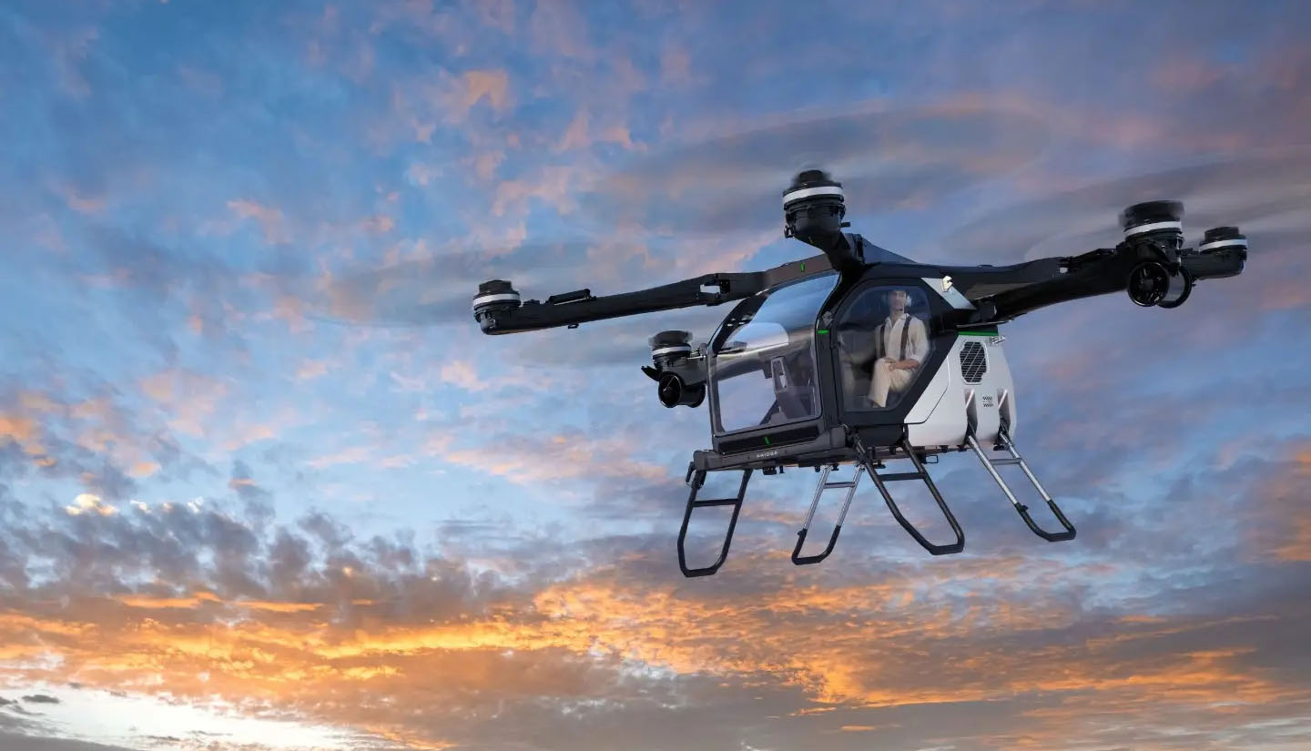 A six-wheel vehicle drivable with a standard license, featuring a spacious four-seat design that easily fits into standard parking spaces and allows effortless access to underground garages. Equipped with an innovative Electric Vertical Take-Off and Landing (eVTOL) system, its six-rotor, dual-duct structure with foldable blades and arms enables seamless transformation between ground driving and aerial flight. With five nationwide Flying Camps offering diverse flight experiences, this modular flying car redefines mobility—conquering mountains and seas, uniting sky and land in one extraordinary ride.