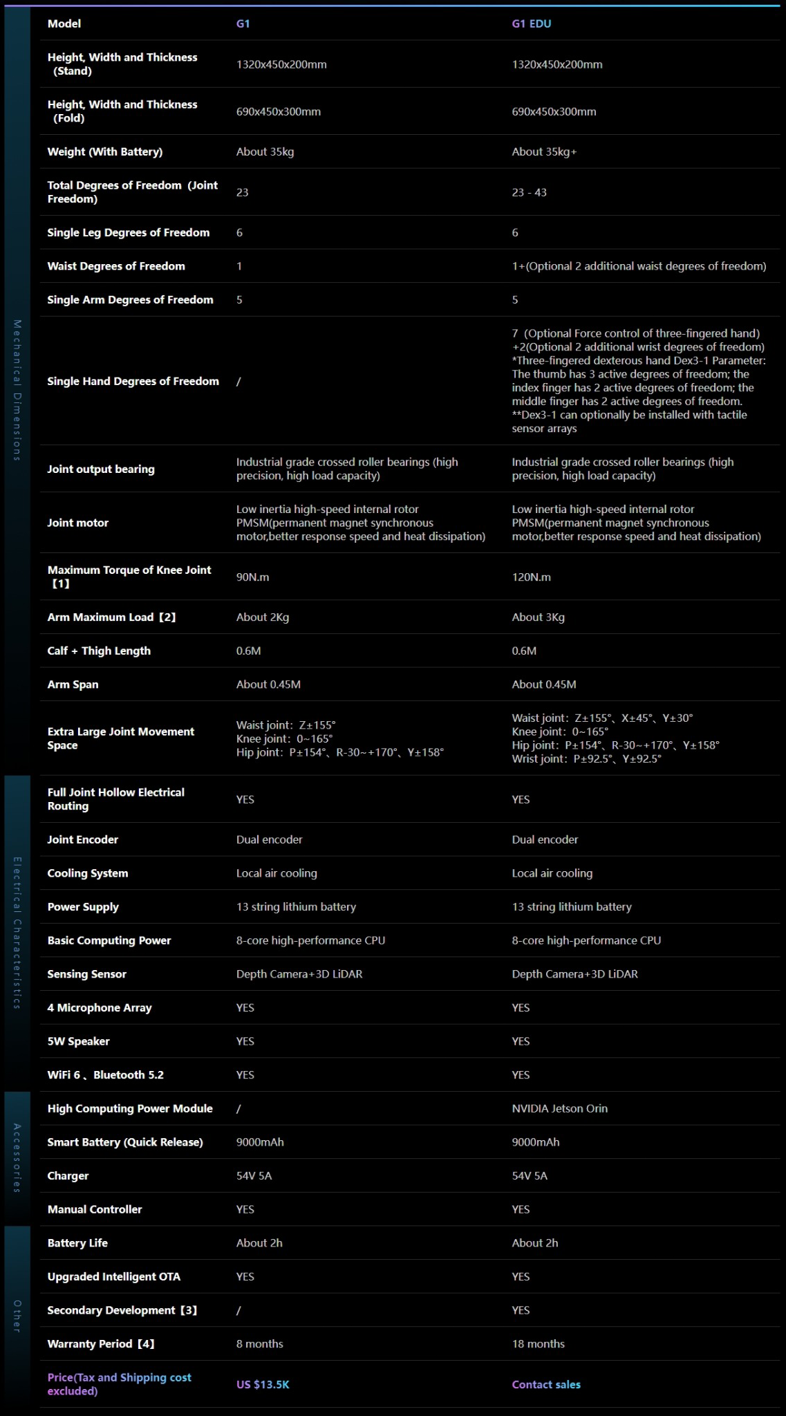 [1] The maximum torque of the joint motors of the whole machine is different. This is the maximum torque of the largest joint motor among them.