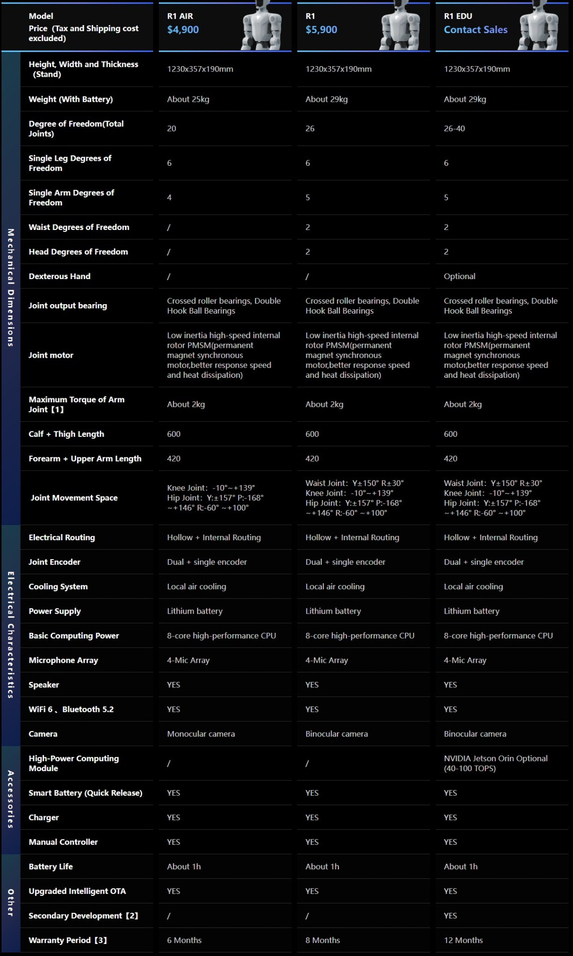 [5] The humanoid robot has a complex structure and extremely powerful power. Users are asked to keep a sufficient safe distance between the humanoid robot and people.Please use with caution